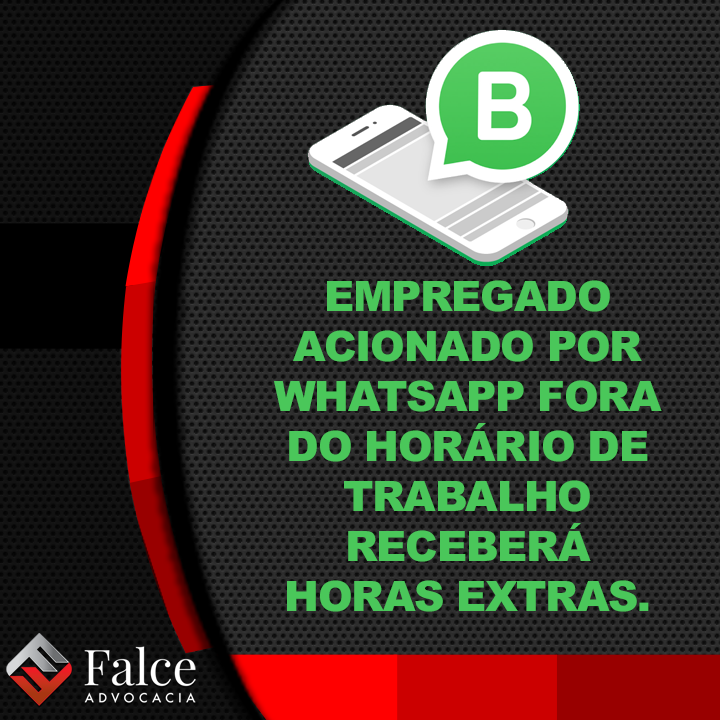 EMPREGADO ACIONADO POR WHATSAPP FORA DO HORÁRIO DE TRABALHO RECEBERÁ HORAS EXTRAS. 04/08/2019 Informativos 0 Comentário A juíza Daniela Torres Conceição, titular da 3ª Vara ... Leia Mais
